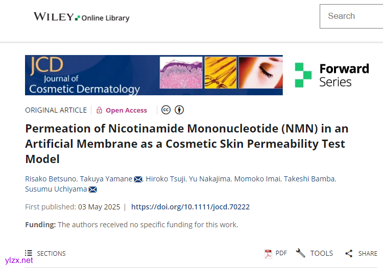 J Cosmet Dermatol:基于人工膜模型的化妆品透皮评价,烟酰胺单核苷酸(NMN)渗透特性