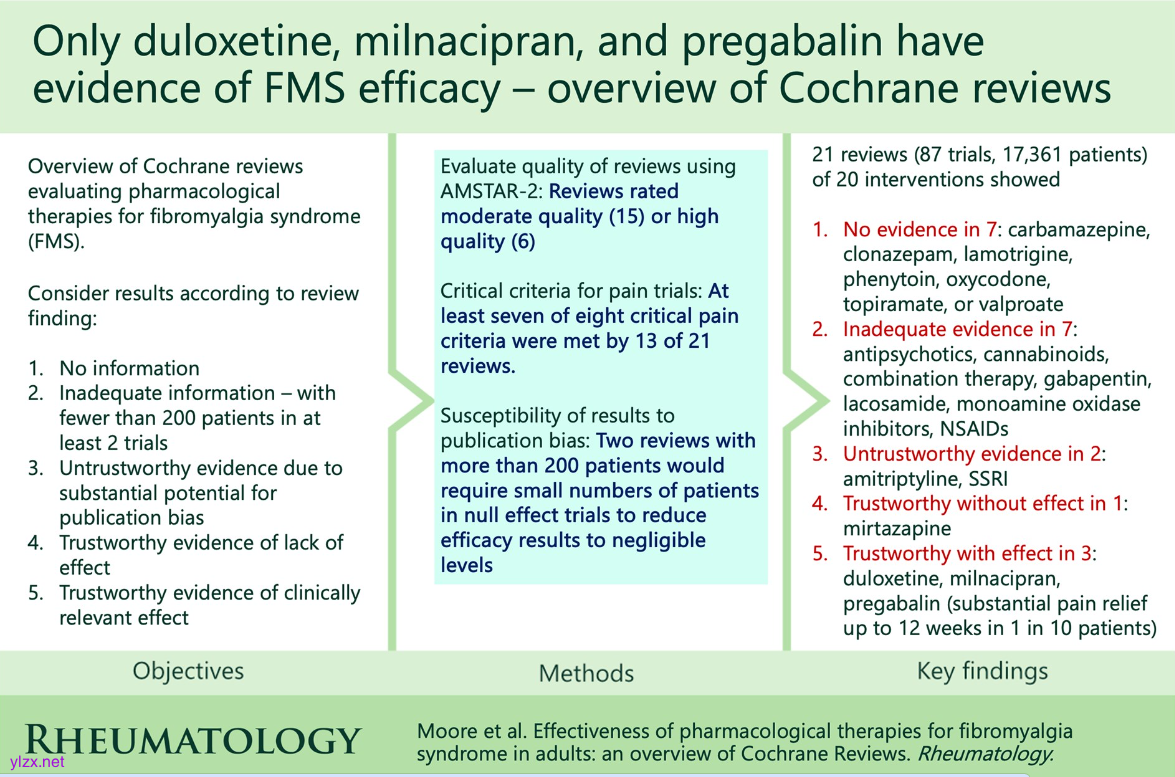 纤维肌痛综合征药物治疗效果与安全性的系统评价整合分析研究设计及主要研究结果